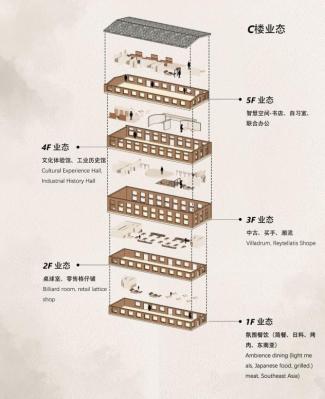 在园区规划中,A栋业态以体验式的茶饮店为主,B楼业态主要为餐饮、创意工坊、DIY、沉浸式体验、剧本杀等。主楼C、D栋业态更为丰富,从氛围餐饮到健身房,从多媒体展厅到录音室,从创意馆到书店、自习室,满足不同领域、不同商家的需求。