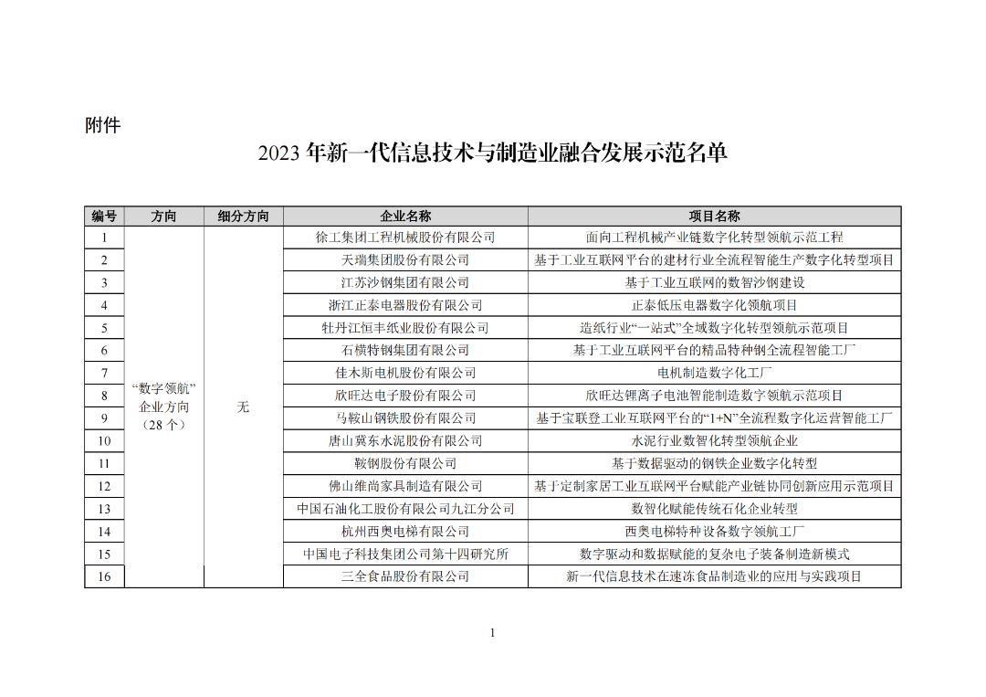 原标题:《工信部关于2023年新一代信息技术与制造业融合发展示范名单的公示》