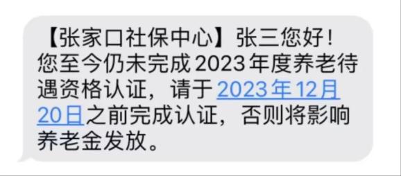 近日,我们对至今仍未完成2023年度养老待遇资格认证的退休人员发送了这样一条短信提醒: