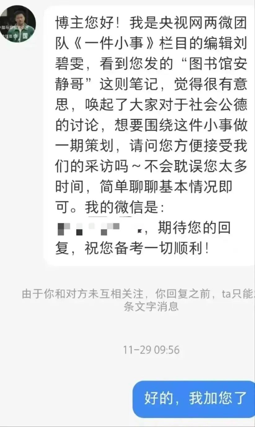 以至于后来连续多天没有等到“安静哥”时,她们在自习室里挨桌找了好几遍,于是才有了后面的故事……