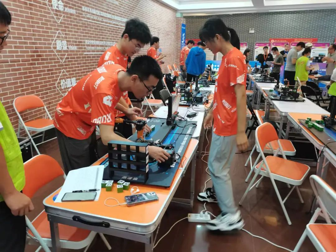 赛前的准备工作并非一帆风顺,距离比赛只剩几天时间,问题却接二连三出现。比赛前两天,机械臂运行位置出现非常大的偏差,导致之前调节的参数都出现了错误。刚开始他们以为是代码的问题,摸索调试后发现根本无法改变现状。时间在一点点流逝,出现的问题却毫无进展,焦虑紧张的情绪开始蔓延。康忻猜测可能是机械臂本身的问题,于是在赛前调试设备时,他和裁判联系更换了一个新的机械臂。再次安装重启后,机械臂顺利找到物块并放对了位置。“那一刻我们像是走出了漫漫长夜,迎来了黎明的曙光”,康忻回忆起赛前的那几天至今仍紧张不已,他回忆道:“面对突如其来的问题,我们心里都捏了一把汗,但必须冷静下来,耐心细致地一处处寻找问题、分析问题。好在最终找到了解决问题的方法,为之后的比赛吃下‘定心丸’。”
