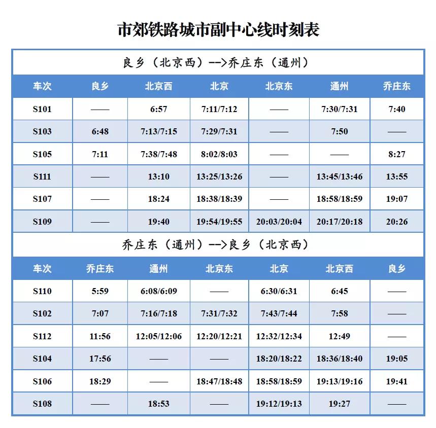 城市副中心线是一条贯穿行政办公区、中心城和房山新城的市郊铁路,沿线设乔庄东站、通州站、北京东站、北京站、北京西站和良乡站,每日开行列车6对。城市副中心线单列坐席477人,最大载客量可达1471人,列车上还配备有卫生间、小桌板及免费的WiFi。