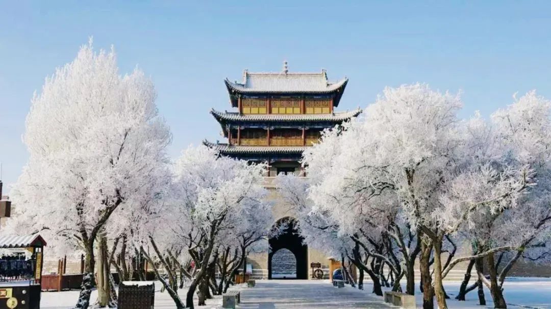 皑皑白雪覆盖着古老的关城