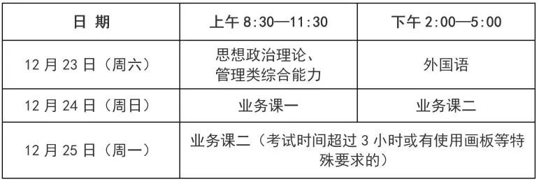 2024年本市硕士研究生招生考试(初试)将于12月23日-25日进行,考试具体时间、科目安排如下:
