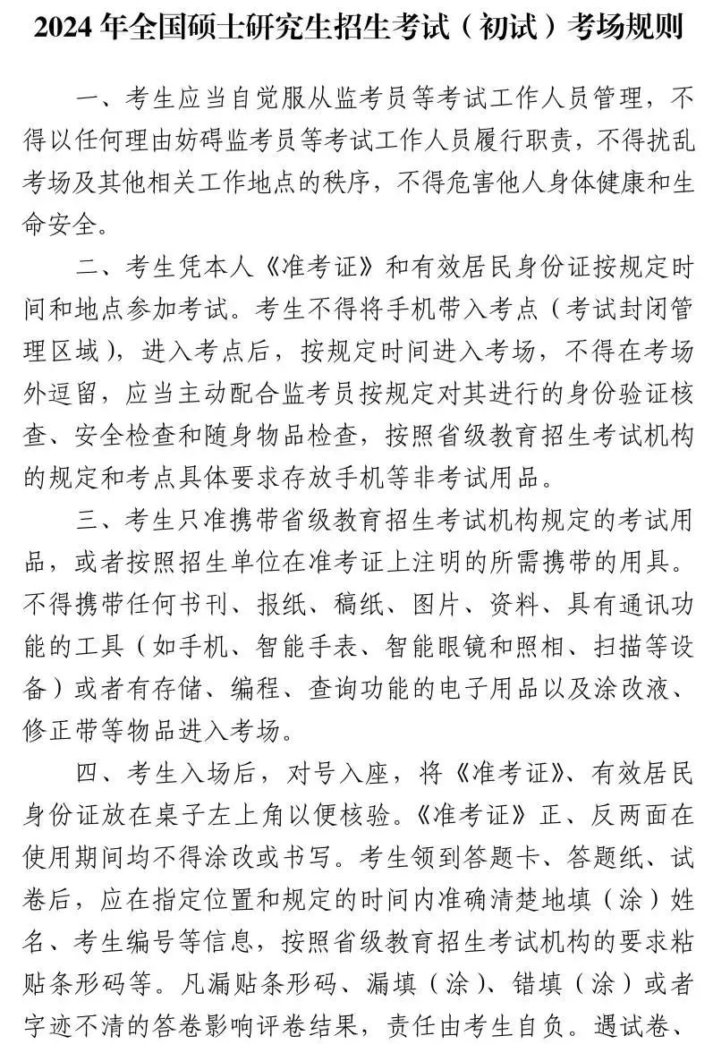 @研考生,沪2024硕士研究生招生考试(初试)考前提醒请查收