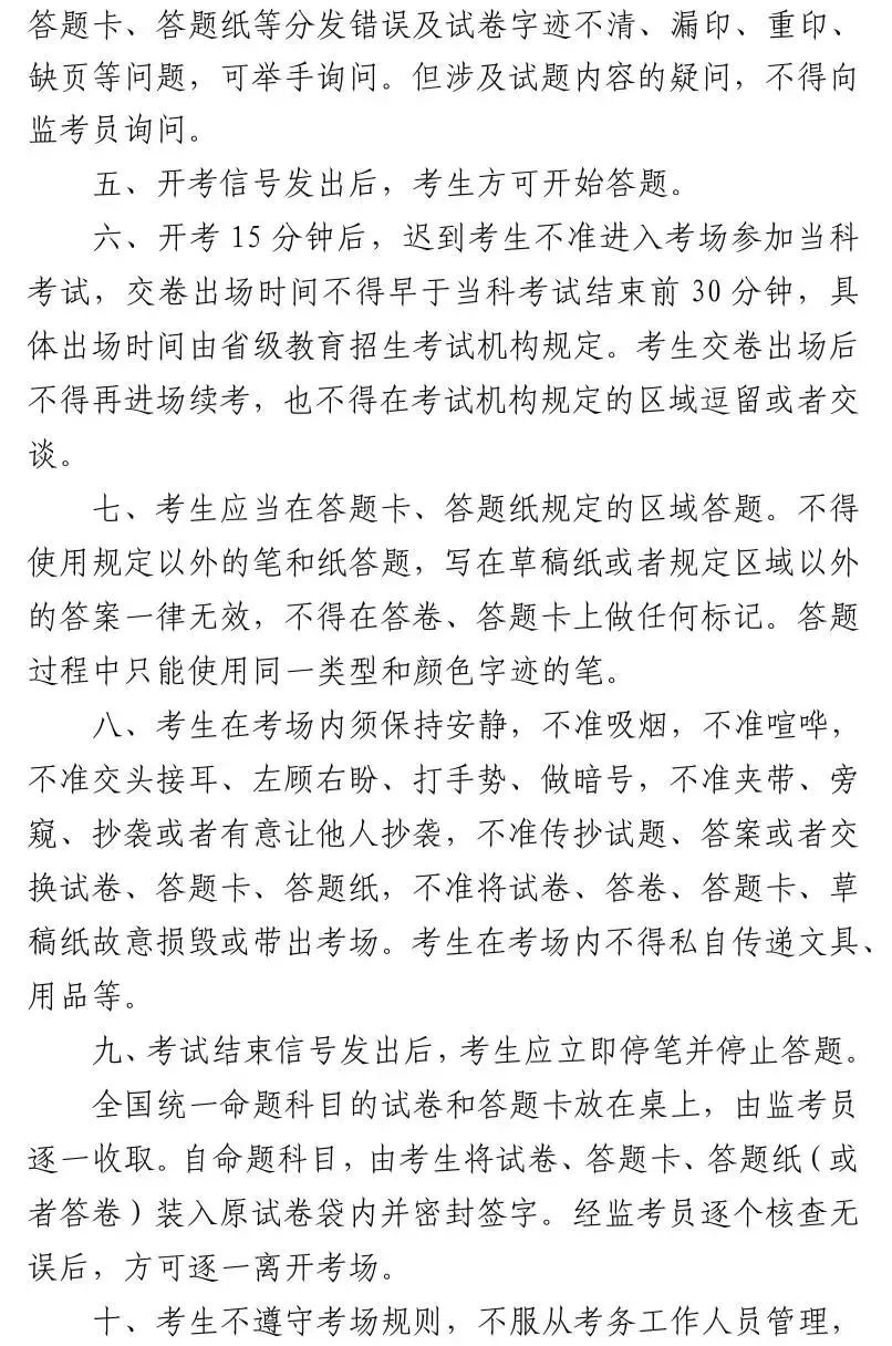 4.带齐证件参加考试。每场考试都必须凭考生本人有效居民身份证件原件和纸质版《准考证》进入考场。考生进入考点后,须在规定时间进入考场,不得在考场外逗留。