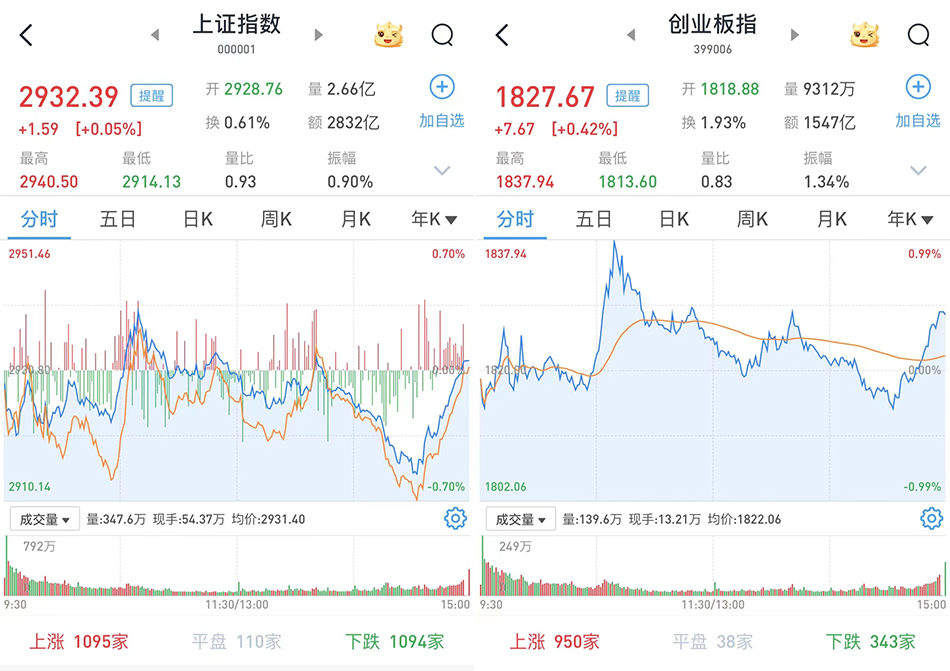 A股三大指数尾盘翻红,两市成交近6500亿元