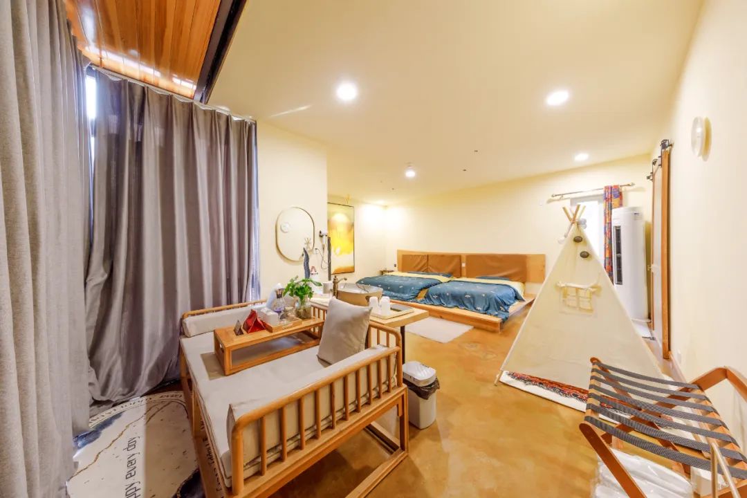 八间房,有适合情侣的山景房,有适合朋友的观景房,也有适合家人庭院套房,能满足不同需求的客人。