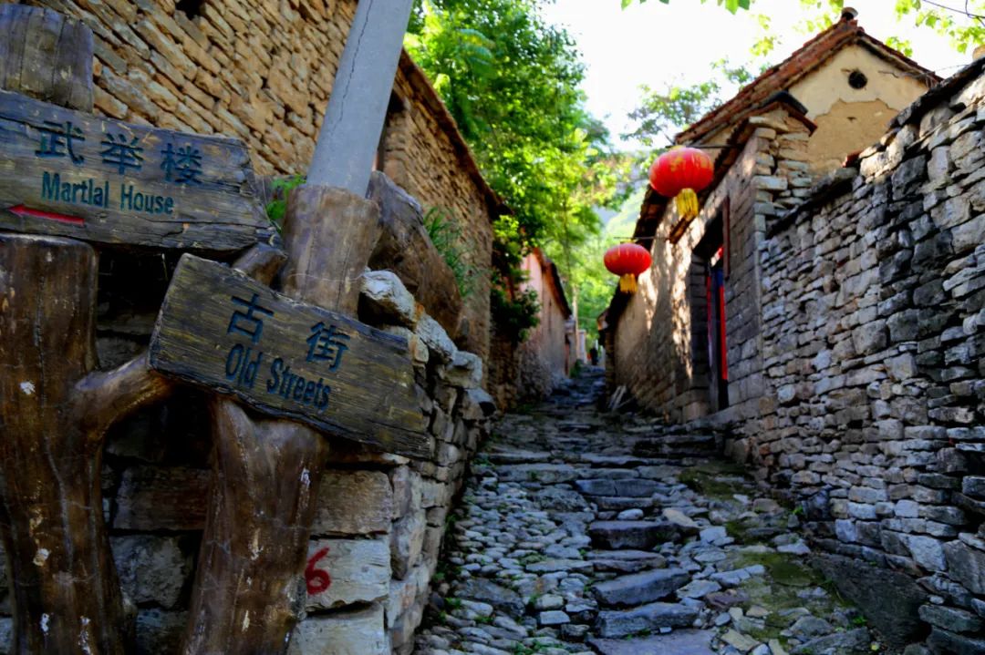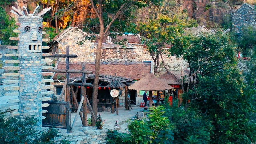 石砖堆砌的房屋错落有致,石板铺就的小路蜿蜒整个村落,参天的古树掩映其中绿意融融,斑驳的院墙,古遗的石碾石磨……都在诉说着时光的故事。