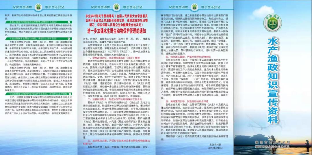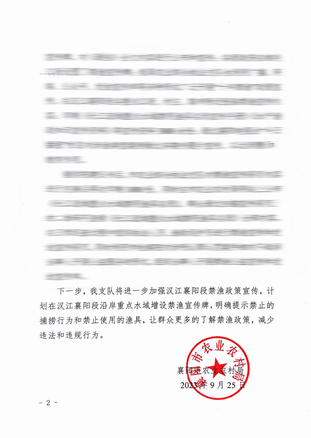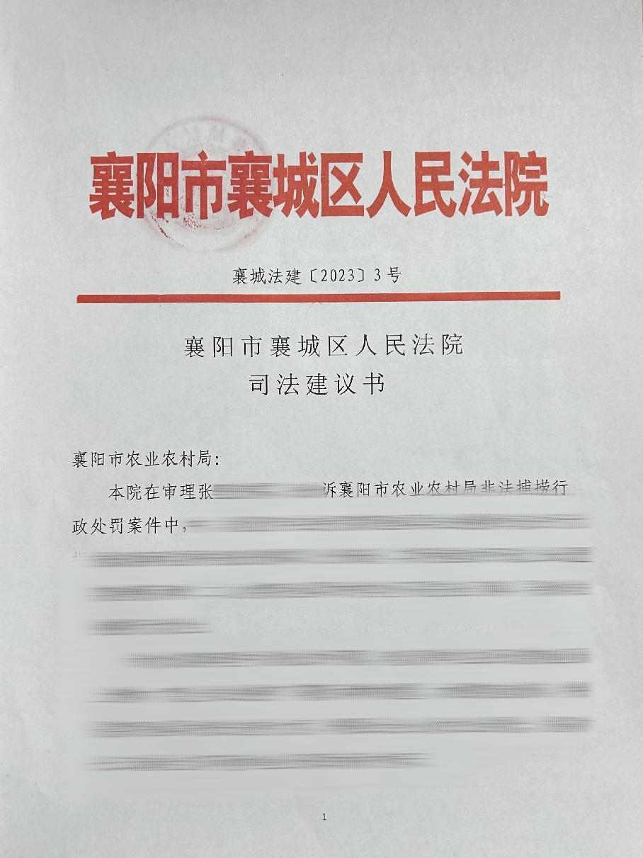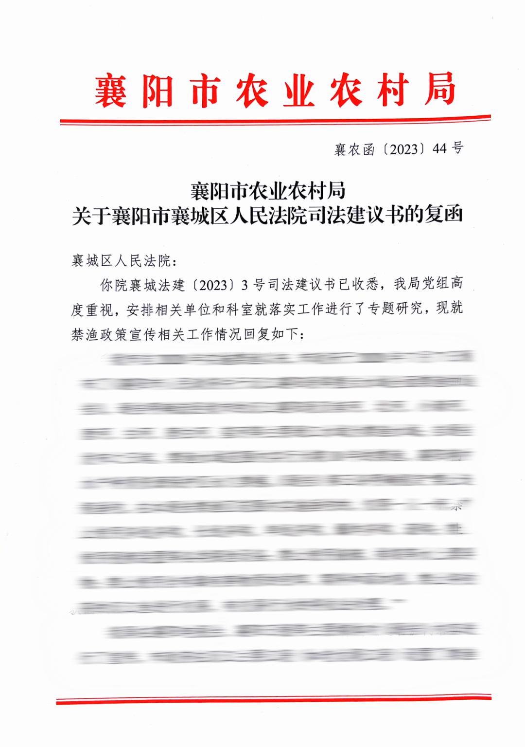 襄阳市农业农村局接收司法建议书后,立即在网站公布《长江流域重点水域禁用渔具名录》,同时对禁渔宣传彩页内容进行完善,并印制1000份组织执法人员、渔政巡护员进行发放。并表示,下一步将加强汉江襄阳段禁渔政策宣传,增设宣传牌,让群众了解禁渔政策,减少违法违规行为。