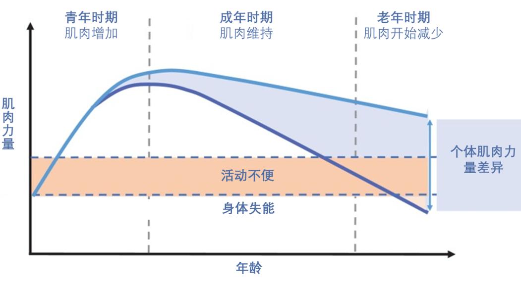 经过针对性的力量训练,肌肉流失曲线会更平缓,在晚年获得更好的生活质量。