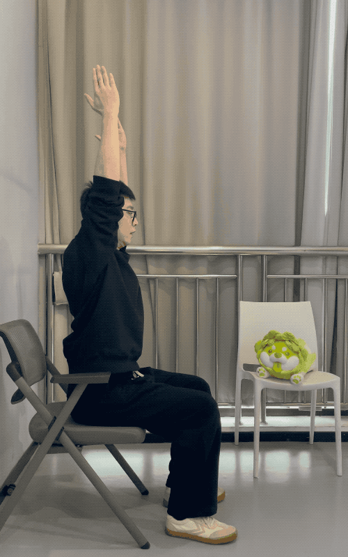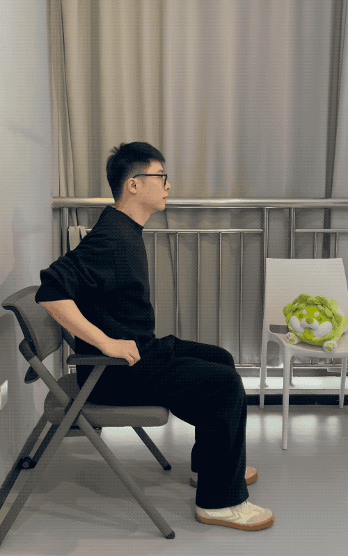➌ 注意全程要保持腰背挺直,不要弯腰驼背,双手可撑着扶手借力;