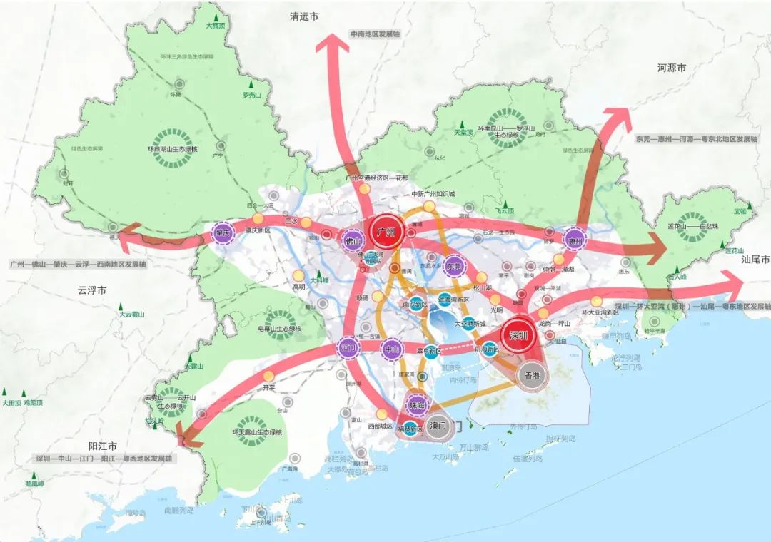 对于广东来说,广州、深圳谋求的是大都市圈格局,范围将跨越珠三角,辐射粤东西北。
