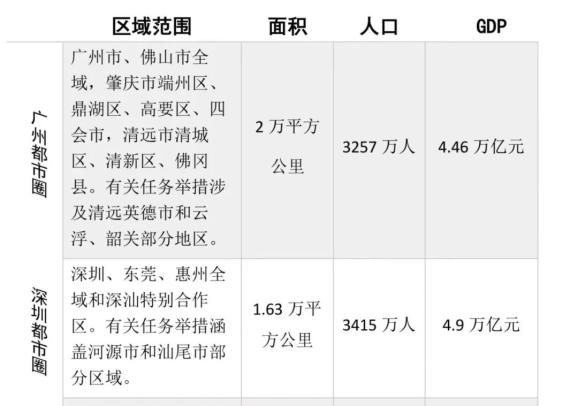无论广州都市圈还是深圳都市圈,面积都不大,都在2万平方公里之内,人口规模在3000万人以上,但经济总量双双逼近5万亿。