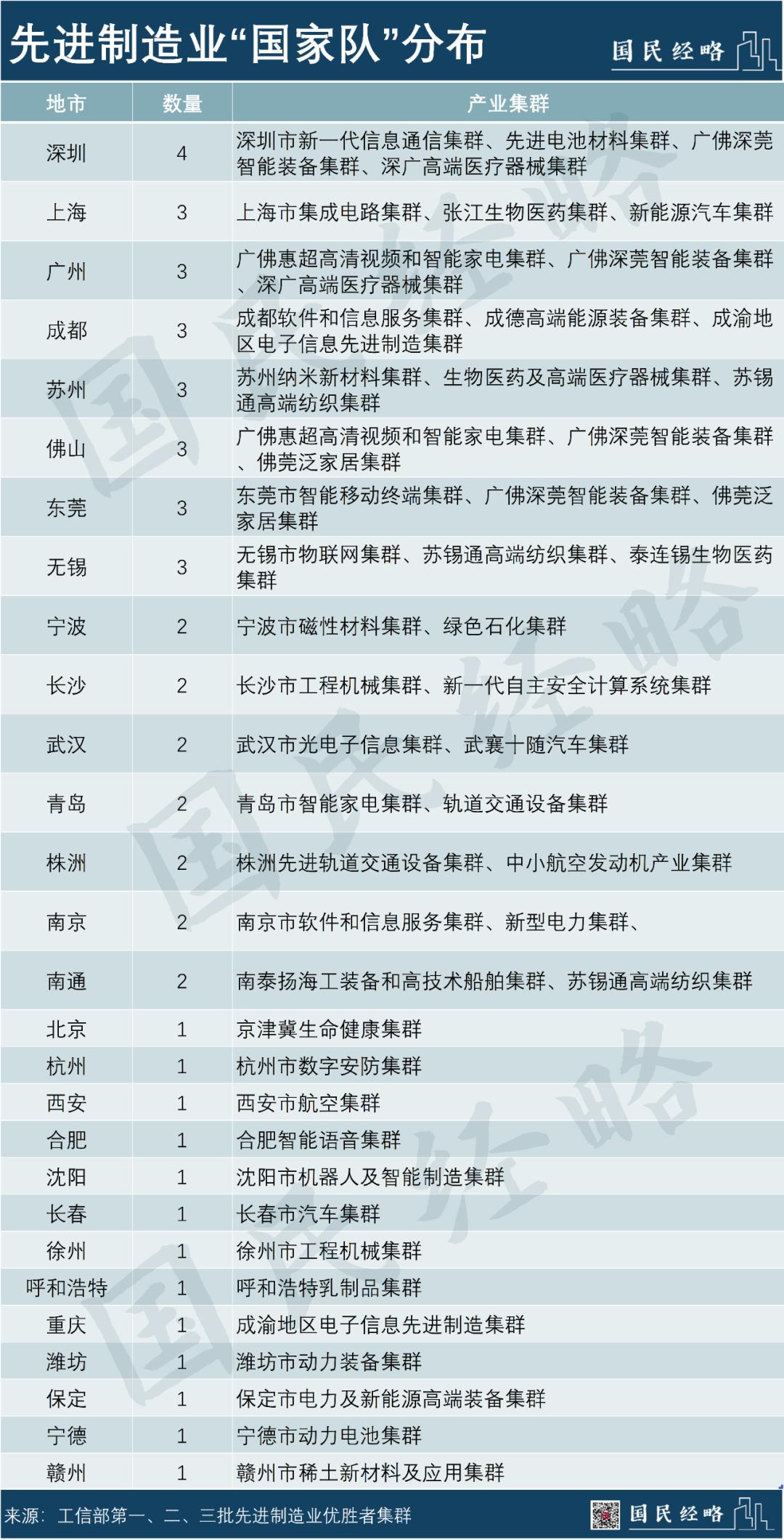 根据工信部先后发布的45个先进制造业集群优胜者名单,广东共有7个集群入围。