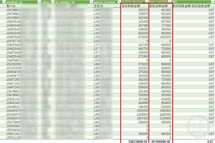 贷款金额和实际到账金额对比。图片来源/上海警方