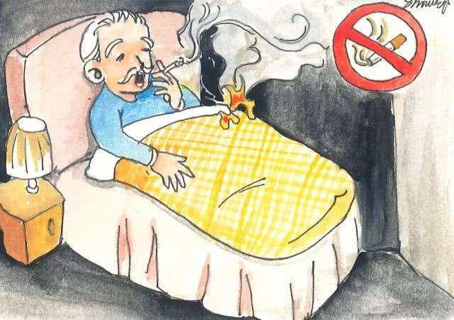 若不小心将未熄灭的烟头掉落下来,很容易点燃衣服、被褥,危及生命安全。