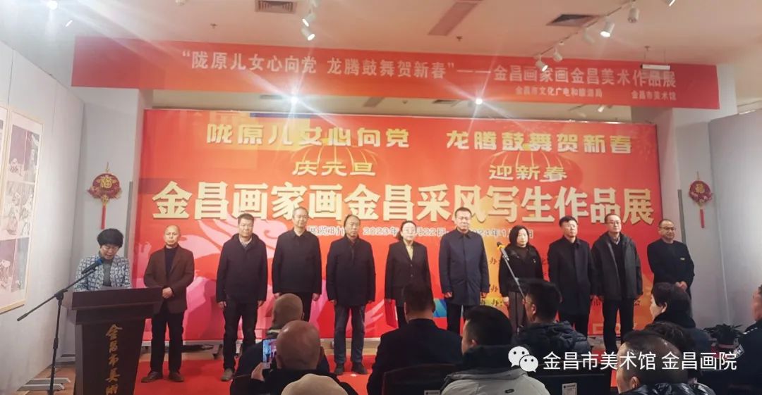 “陇原儿女心向党·龙腾鼓舞贺新春”,在元旦佳节来临之际,为繁荣和促进我市文艺创作,不断优化市民审美情趣、文化修养,进一步提升群众文化获得感幸福感,提高公共文化服务品质和服务效能。由金昌市文化广电和旅游局、金昌市文学艺术界联合会主办,金昌市美术馆(金昌画院)承办,金昌市文化中心、金昌市美术家协会协办的“陇原儿女心向党·龙腾鼓舞贺新春”——金昌画家画金昌美术作品展在金昌市美术馆一楼展厅隆重开幕。金昌市委宣传部副部长曹文龙宣布展览开幕,金昌市文化广电和旅游局党组成员、副局长叶贤萍主持展览开幕仪式,金昌市文学艺术界联合会党组成员、副主席贾戎致辞,金昌市美术家协会副主席、金昌市美术馆副馆长张发俭介绍展览情况。