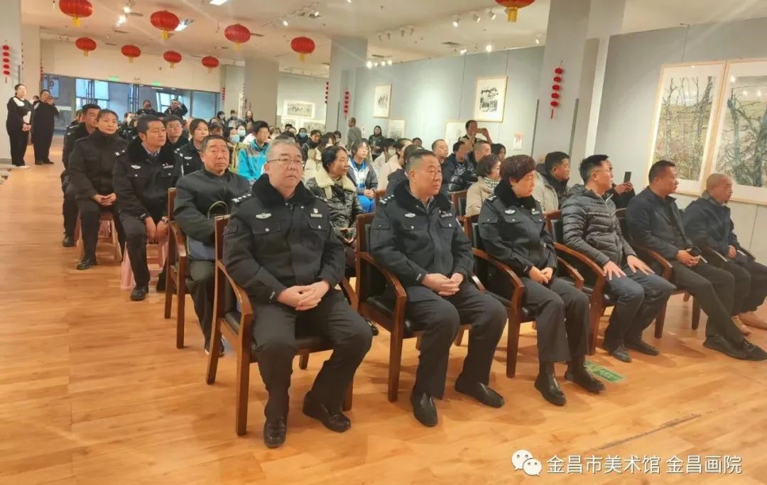 出席此次开幕仪式的领导嘉宾还有:金昌市文明办主任展之春,金昌市文学艺术界联合会党组成员、副主席陈学仕,甘肃省美术家协会副主席、金昌市文学艺术界联合会副主席、金昌市美术家协会主席王晓银,金昌市融媒体中心副主任翟雅宾,金昌市博物馆馆长李勇杰,金昌市文化中心主任靳生红,金昌市文化馆馆长辛秉常及参展作者,金昌市文广系统干部职工,金昌市公安文联、金昌市老年大学书画爱好者,金昌市第一中学师生,市、县、区美协会员和域内外书画爱好者100余人参加了开幕仪式。