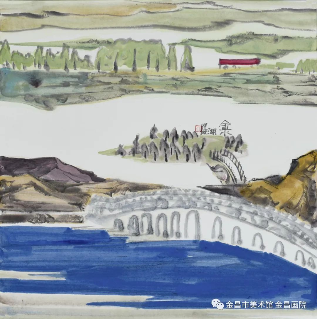 张发俭《金昌十景之金水湖》50x50cm
