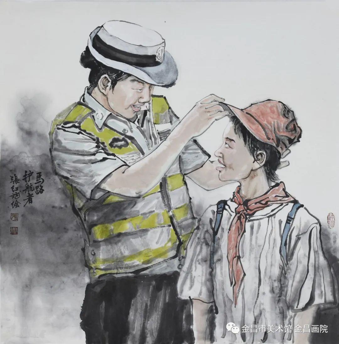 张红斌《马路护航者》68x68cm