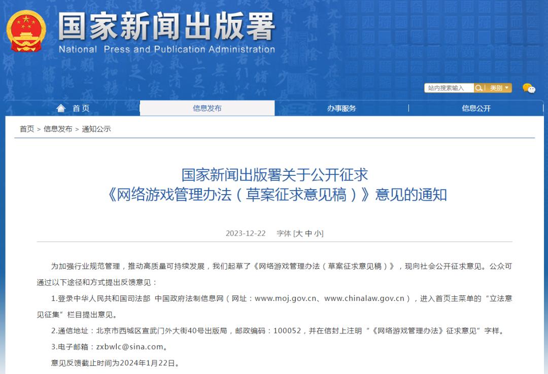 《网络游戏管理办法(草案征求意见稿)》