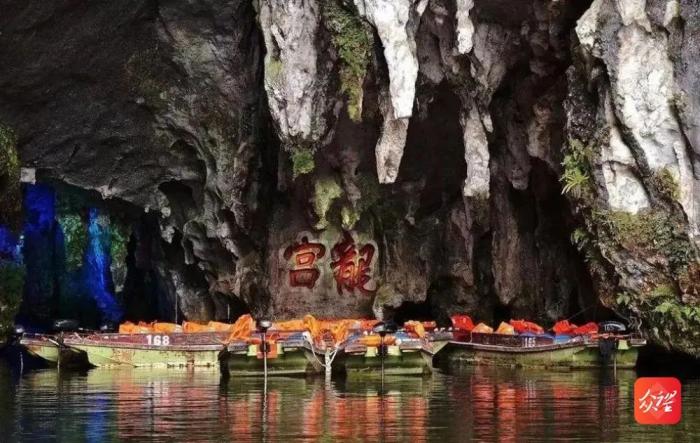 龙宫景区由龙潭秘境和通漩田园两大主题片区组成,是一个天然的大型溶洞暗湖。景区内溶洞、峡谷、瀑布、峰林、绝壁、溪河、石林、漏斗、暗河等多种喀斯特地质地貌景观美轮美奂,是世界上喀斯特地貌形态展示最为全面、集中的景区,被誉为“天下喀斯特,尽在龙宫”。