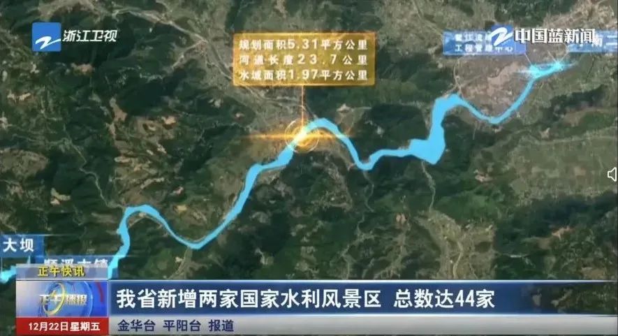 12月22日,浙江卫视《正午播报》播出《我省新增两家国家水利风景区 总数达44家》,关注金华婺城白沙溪水利风景区入选国家水利风景区。