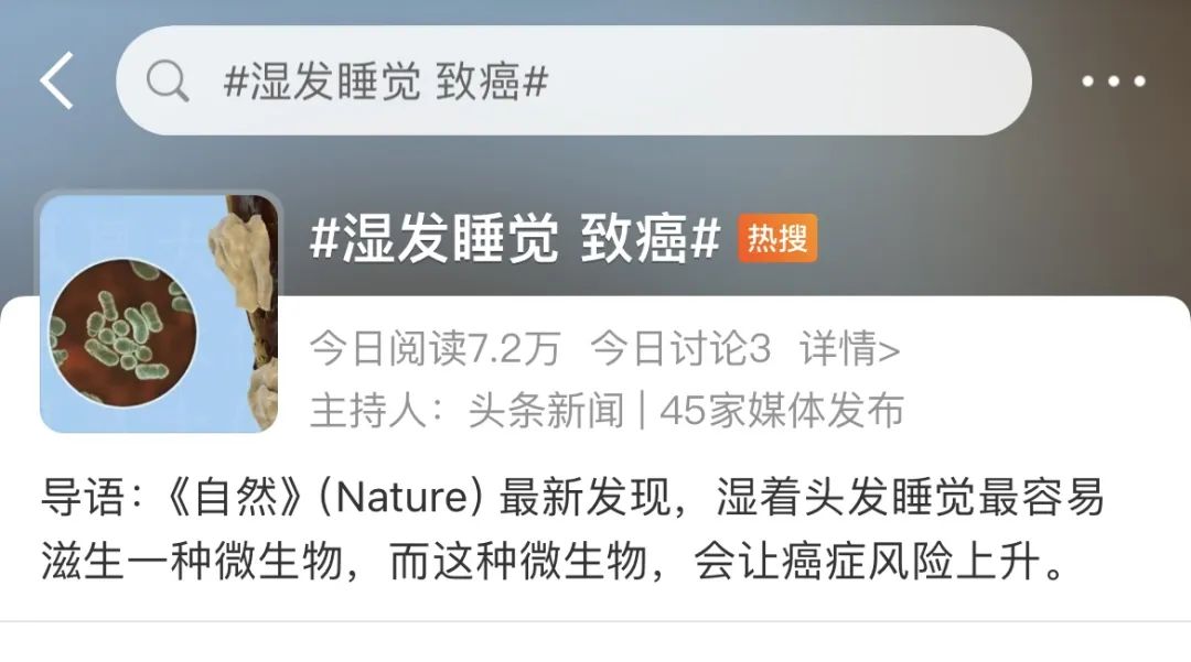 “湿发睡觉 致癌”上了热搜