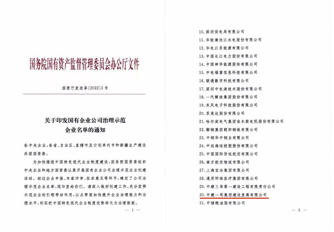 近年来,一局发展深入推进企业改革,在完善公司治理中持续推动加强党的领导,深化公司董事会建设,现代企业制度运行更加规范高效,企业治理体系和治理能力现代化水平持续提升。2022年,一局发展入选国务院国资委“全国国有企业公司治理示范企业”。