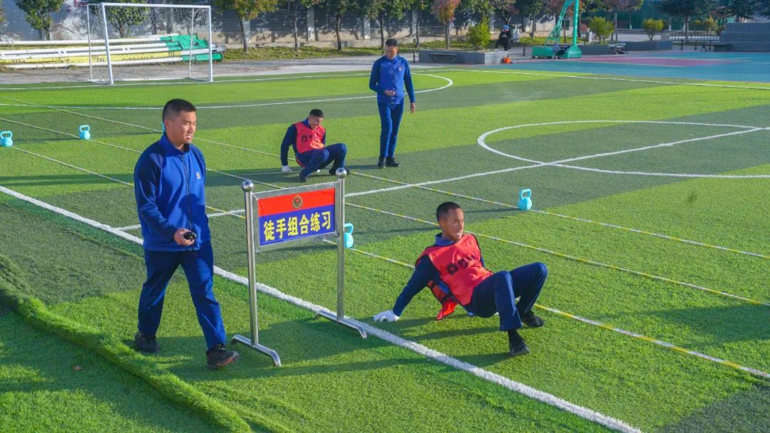 在经历了一场意志力与耐力的双重比拼和较量后,到了最具有趣味性的徒手组合练习,该科目着重检验参考队员的身体协调性,如果说自身协调性不过关,那么就会导致在该科目的考核过程中出现成绩不理想的情况,因此,参考队员们提前温习着考核动作。“18、19、20”,后面待考的队员在认真的为正在进行考核的队员数着数,数数完毕后,参考队员犹如脱兔一般,猛地一下从起始线向前方迈进,在返程的最后五十米,参考队员的动作渐渐慢了下来,此时场边异口同声,“坚持住,马上就到终点了”、“快一点、再快一点,马上就突破最好成绩啦!”,场下的加油呐喊声不绝于耳,此时场上的队员彷佛浑身充满了力量,一鼓作气冲过终点,“53秒”,负责卡表的考官在一旁向参考队员报告着成绩,与此同时这也再次刷新了该科目的个人最好成绩。