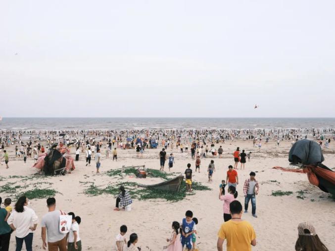 2022年6月3日端午节,广东湛江吴川吴阳金海岸,镇上的居民涌至海边,过一个热闹的端午节。