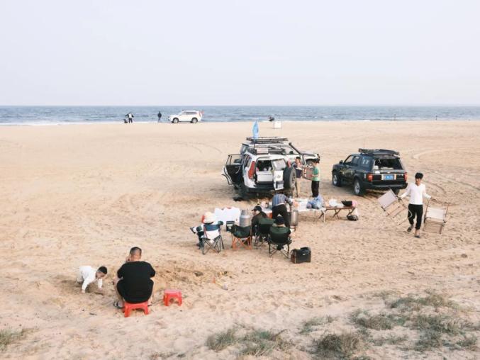 2023年3月18日,广东湛江东海岛龙海天。龙海天海滩为中国第一长滩,大量本地及外地玩越野车的自驾游者在松软的沙滩上开车及野餐。