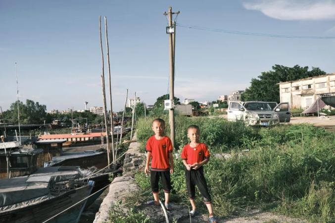 2020年8月23日,广东湛江遂溪遂溪北潭,两个在码头玩耍的哥哥和弟弟。