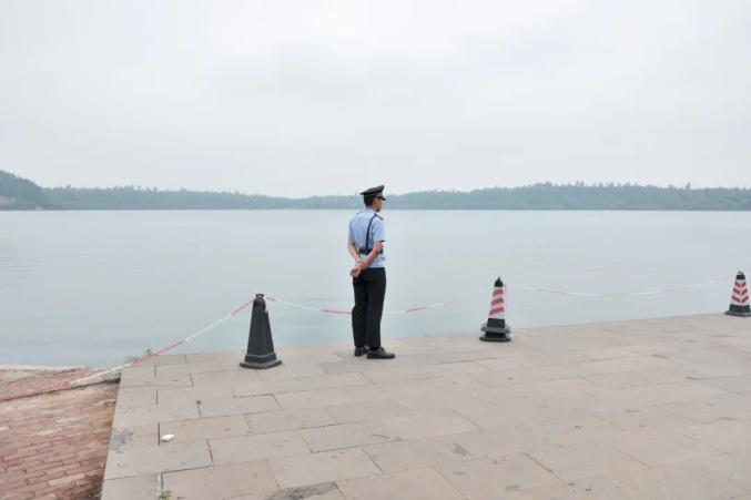 2019年5月3日,广东湛江湖光岩,在岸边防止游客越过警界线的保安。