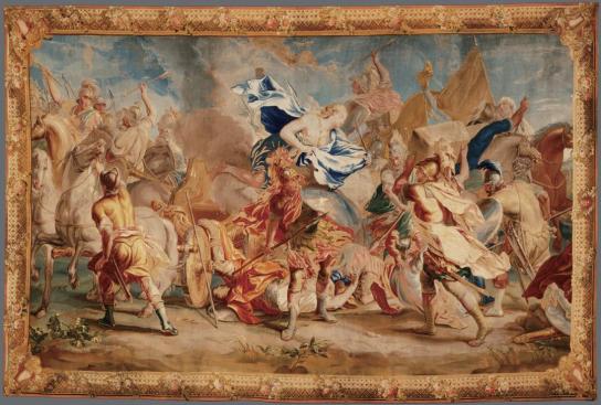 一张 18 世纪比利时羊毛挂毯上描绘的墨涅拉俄斯与帕里斯之战,现藏于洛杉矶艺术博物馆(Los Angeles County Museum of Art),图源:《特洛伊的海伦》她们的事业