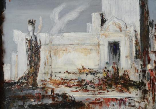 19 世纪法国画家古斯塔夫 · 莫罗的一幅油画,描绘了斯卡恩门前的海伦。画中的特洛伊正在缓慢瓦解,而海伦看起来像一个幽灵。这一切的战争、计谋都是徒劳的,只为了一张茫然、空虚的脸。现藏于古斯塔夫 · 莫罗博物馆,图片来源 :Shonagon photos一旦进入阴冷的墓穴,死者的贵重物品就会摆在她四周或者一张精心制作的凳子上。迈锡尼的“克吕泰涅斯特拉之墓”在1876年和1891年两次打开时,里面都有一只被压坏的丰饶角,装满了瓜果和谷穗,这证明为死者所选择的都是最好的。