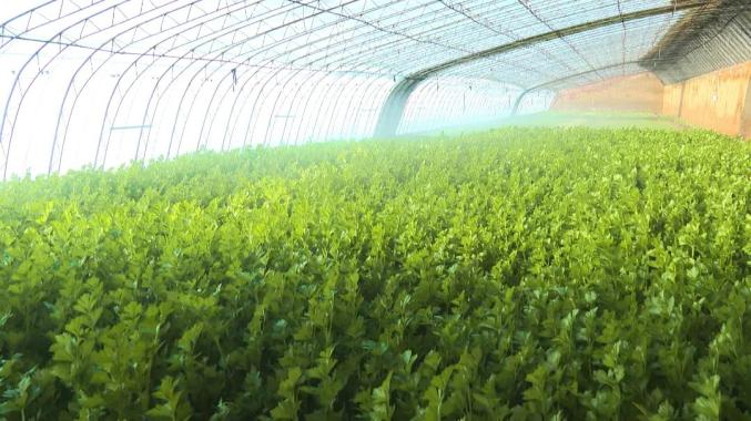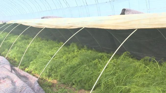 在新安镇七吉村的蔬菜大棚内,屋外天寒地冻,棚内温暖如春,一行行鲜嫩翠绿的芹菜、茴香、菠菜郁郁葱葱、长势旺盛,新鲜的蔬菜正源源不断地运往我县各大商超。