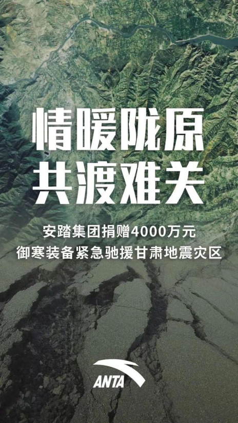 主题:安踏集团捐赠4000万御寒保暖装备支援甘肃震区