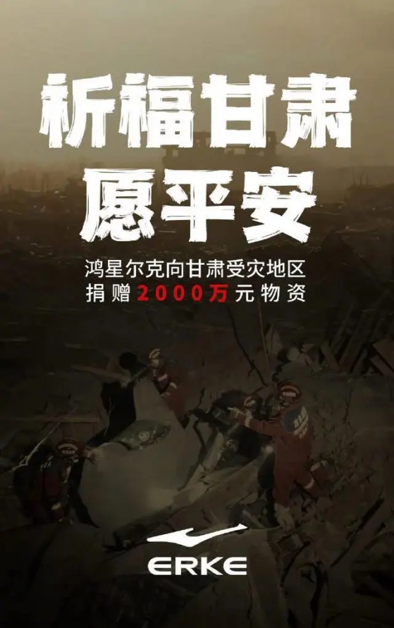 企业:鸿星尔克主题:甘肃地震鸿星尔克捐2000万