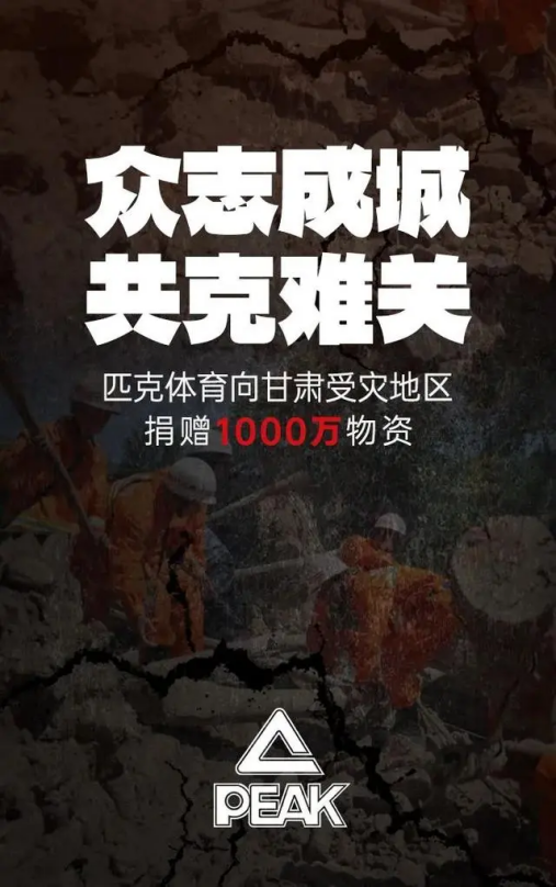 ·匹克体育驰援甘肃受灾地区,捐赠1000万元防寒物资