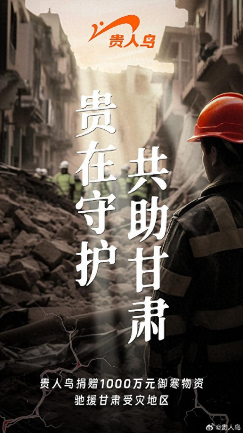 ·贵人鸟捐赠1000万元御寒物资,驰援甘肃受灾地区
