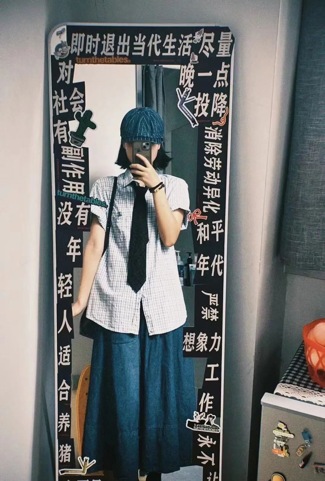 ▲ 细碎而闪光的瞬间家里的镜子也是她精心布置。她将某次购入的文字贴纸,突发奇想地拼贴到了镜子上。