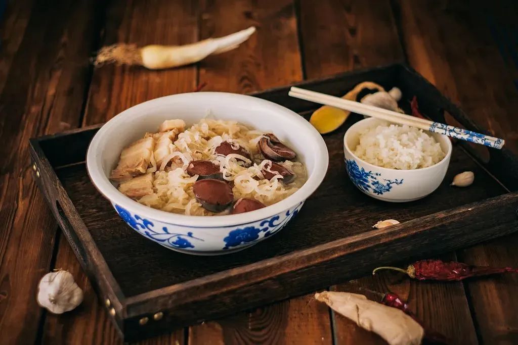 泡菜,属于一种开胃菜,不管是在家里还是在餐馆,或是外卖,我们经常会吃到各种各样腌制的泡菜。湖南的酸萝卜老鸭汤、川渝的酸豆角肉沫,还有东北的酸菜,猪肉酸菜炖粉条、酸菜汆白肉、渍酸菜、酸菜饺子……发酵的酸香成功化解猪肉多余的油腻,让人回味无穷。