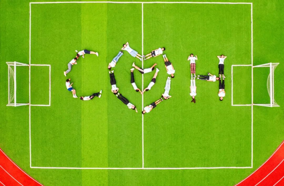 支教队员们在小学操场摆出“春晖”的标志:“CH”图源春晖支教队员