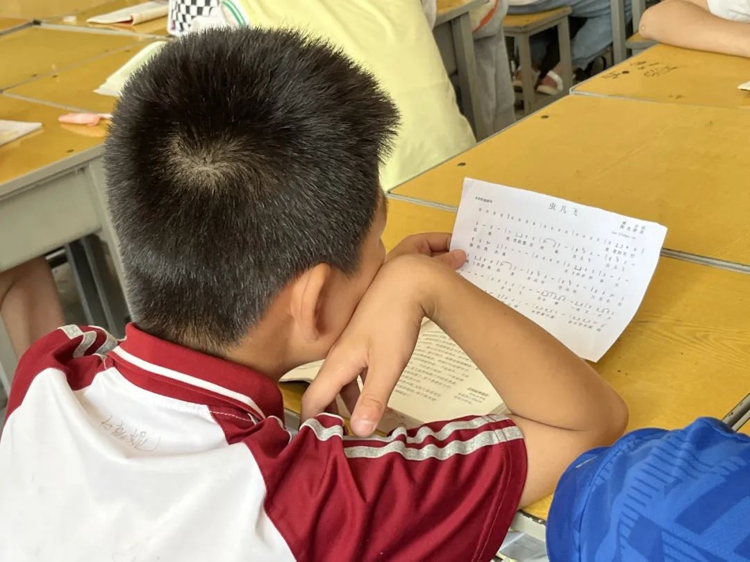 学生们则会笨拙而真挚地给予老师反馈。经过多次班级自习,豆子已经对教室里坐得歪七扭八、做着各种小动作的学生习以为常。一天,她发现有一个男孩正拿着她上午教的歌曲《虫儿飞》的乐谱,无声地默唱。