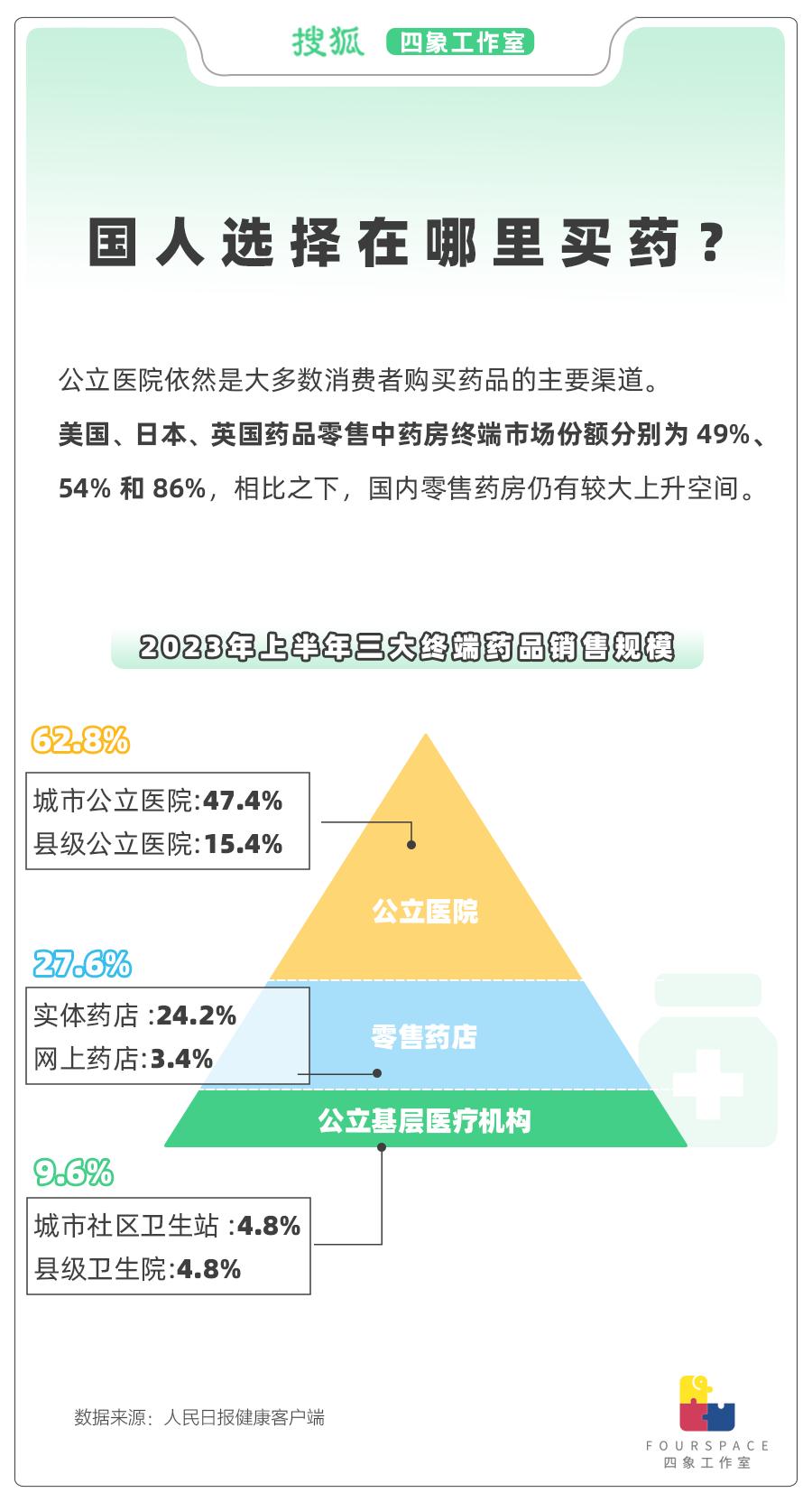 根据人民日报健康客户端对国内三大药品流通终端的销售占比统计,即便“门诊统筹”已将药店纳入医保报销的政策,仍然多达62.8%的消费者通过公立医院的渠道购买药品。