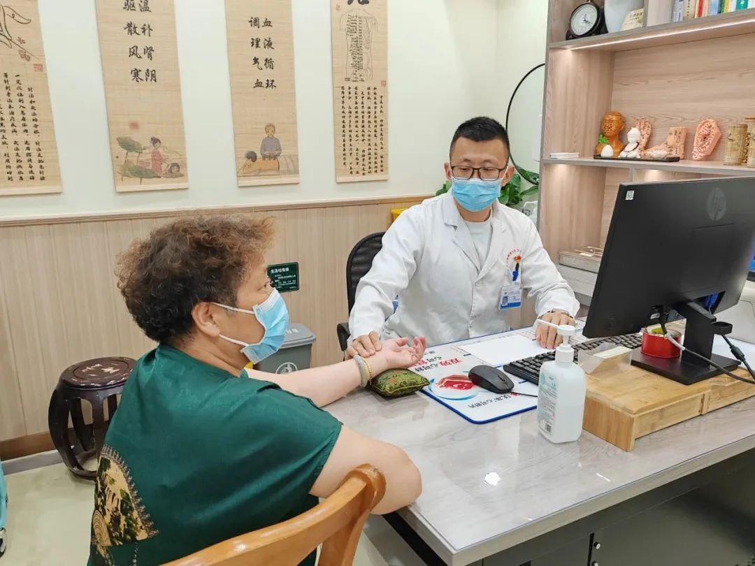 听完徐阿婆的话,谢智晋为她把起了脉,“最近饮食怎么样?血压、血糖高不高?”把完脉,谢智晋一边询问徐阿婆的生活起居,一边为她开具了滋阴补气的药方,并配合中医推拿手法进行治疗。