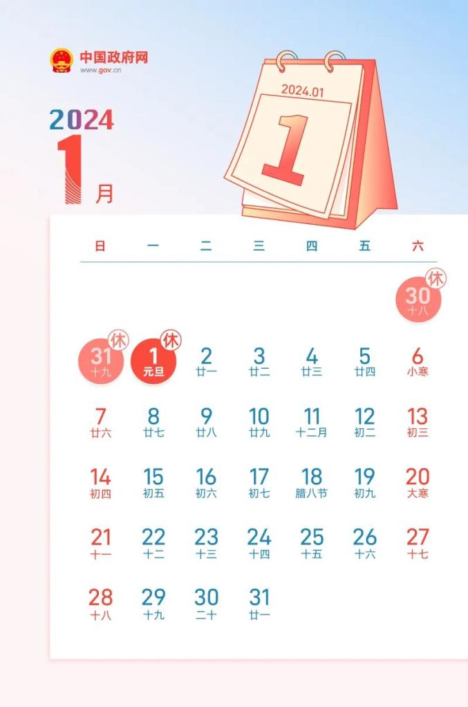 2023年12月30日(周六)、2023年12月31日(周日)、2024年1月1日(周一)。放假共3天。