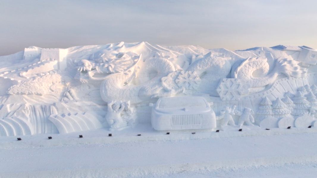 长70米,以“龙腾盛世”为主题的主雪雕